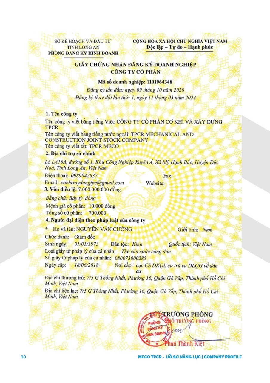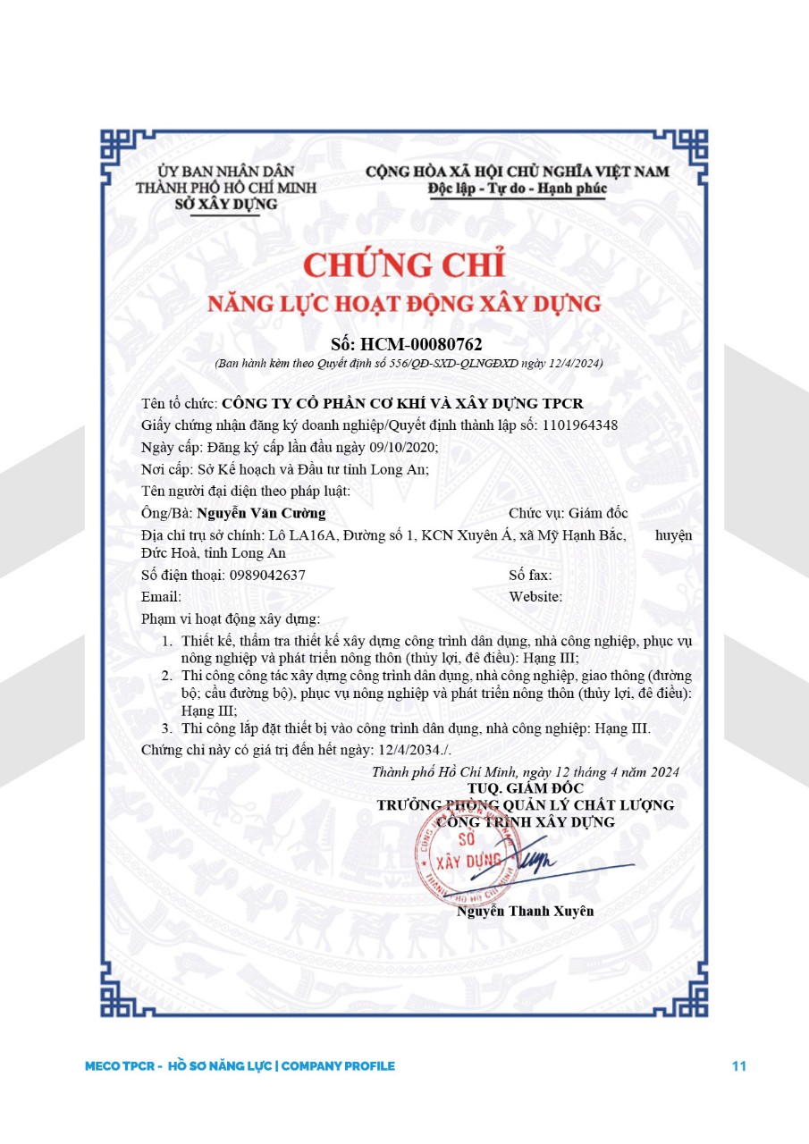CÔNG TY CỔ PHẦN CƠ KHÍ VÀ XÂY DỰNG MECO TPCR